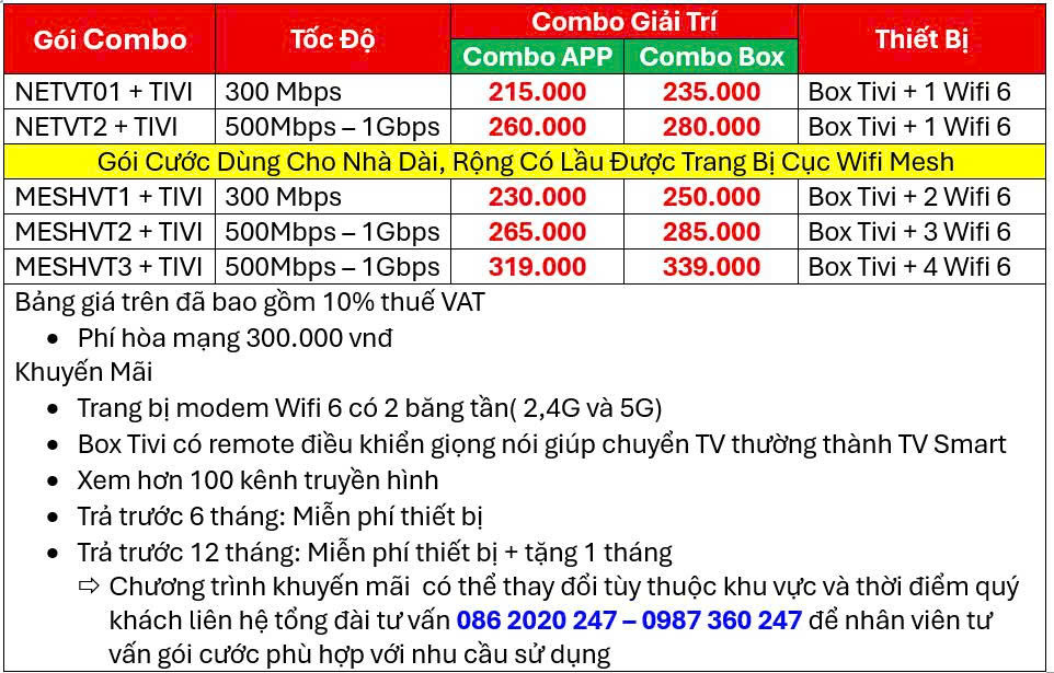 | NETVT1 | 300 Mbps | 195.000 | 1 thiết bị Wifi |