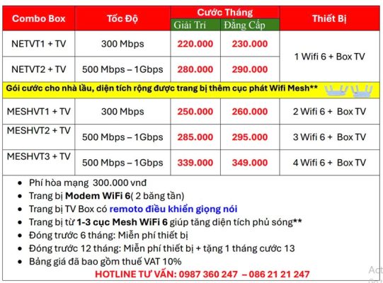 | NETVT1 | 300 Mbps | 180.000 | 1 thiết bị Wifi |